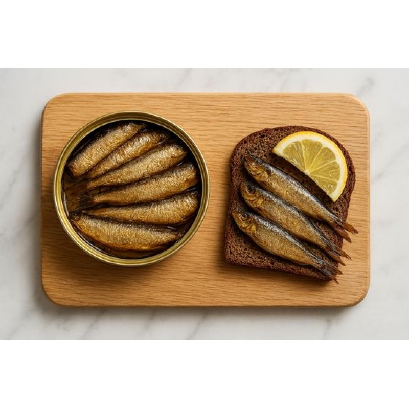 Ingredienti : SPARATI AFFUMICATI( spratus sprattus balticus) 70%, olio di coza 22%, sale.