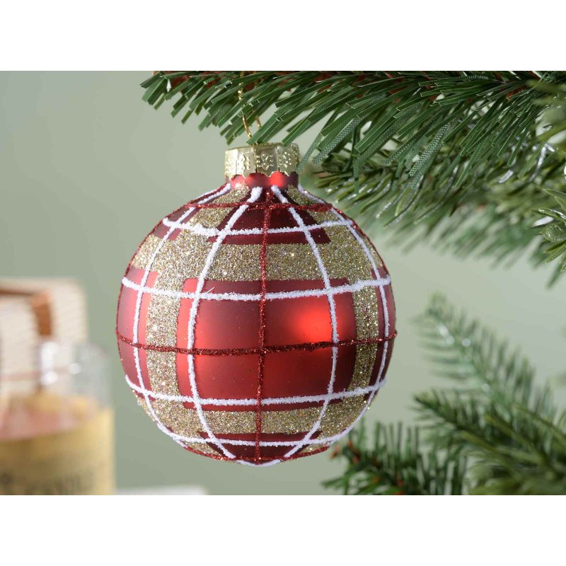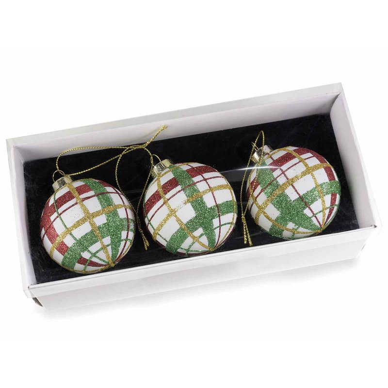 Palline natalizie da appendere in vetro con glitter in scatola da 3 pz