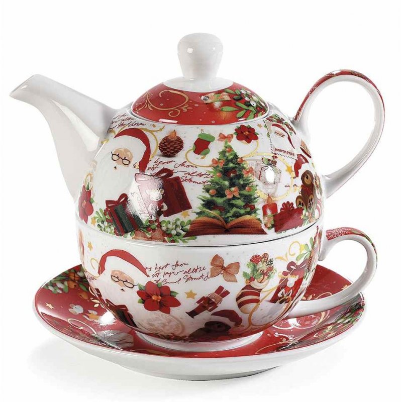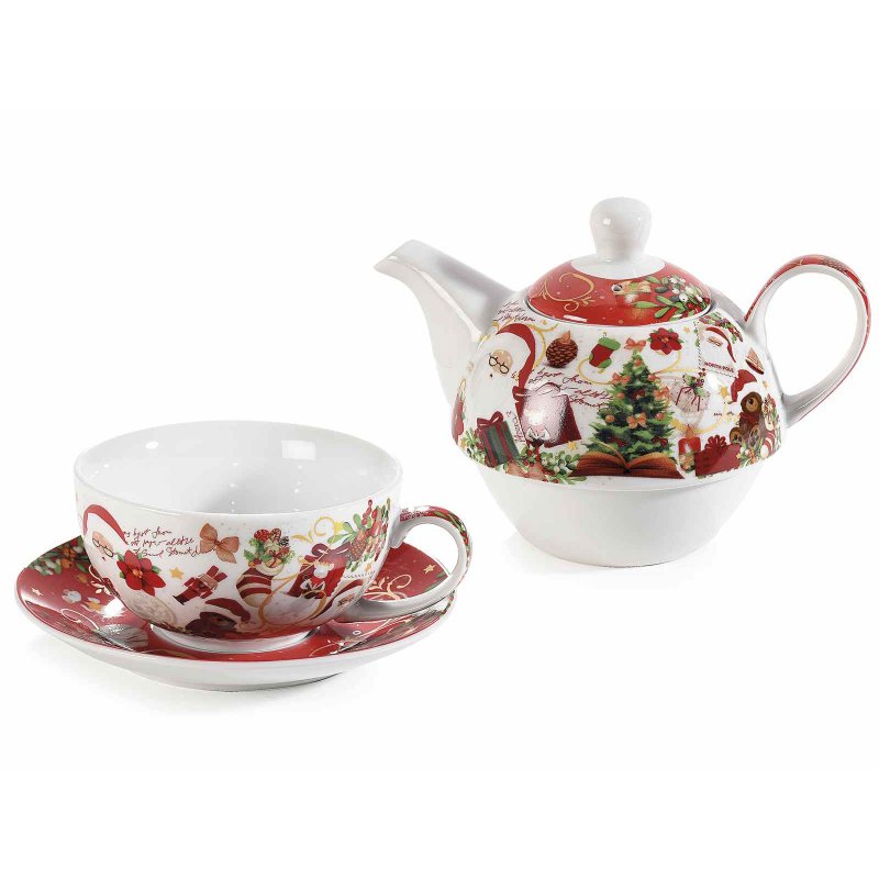 Set di tazze e teiere in porcellana "Fata di Natale" cm 16 x 10,5 x 14 H