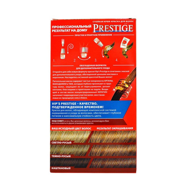 VIPs Prestige è la nuova formula arricchita di uno speciale complesso di vitamine e proteine di frumento che proteggono i capelli danneggiati. Dopo la tintura di tuoi capelli avranno una vita sana e più essenziale. Ease parrucchiere.