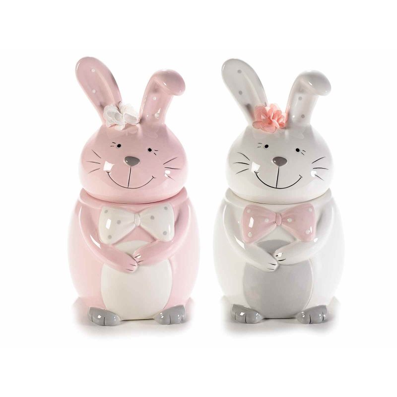 Barattolo alimentare a forma di "Coniglio" in ceramica colorata.