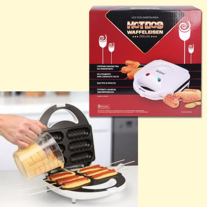 Этот прибор должен быть на каждой кухне. С его помощью можно делать не только традиционные сосиски в тесте, но и другие вкусности на палочке. Например хрустящие вафли с фруктами внутри! Не ограничивайте свою фантазию при выборе начинки для сладких или соленых «хот догов», а прилагающаяся к прибору инструкция поможет вам правильно приготовить тесто.