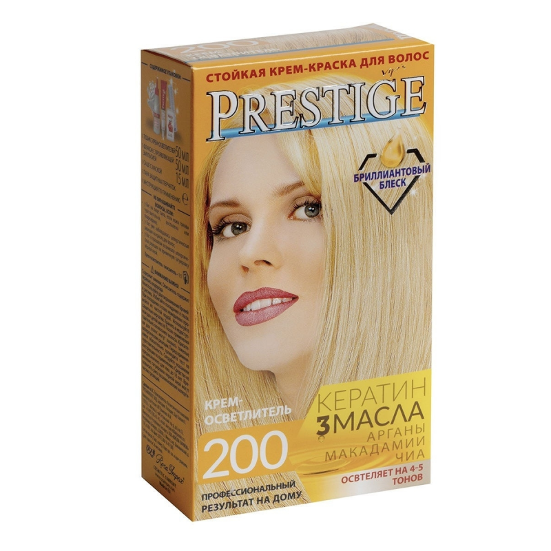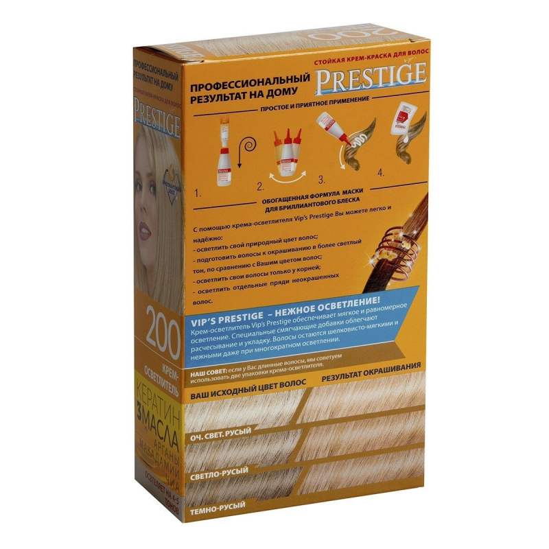 Crema-tinta resistente per capelli 200 "Vip's Prestige", schiarisce di 4-5 tonalità