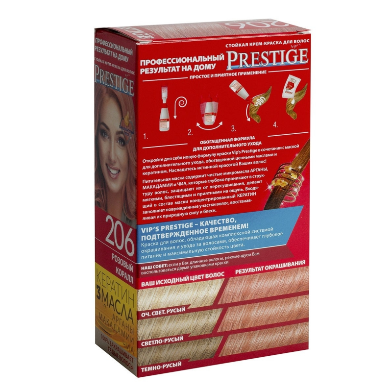 Crema-tinta resistente per capelli 206 Corallo rosa "Vip's Prestige"