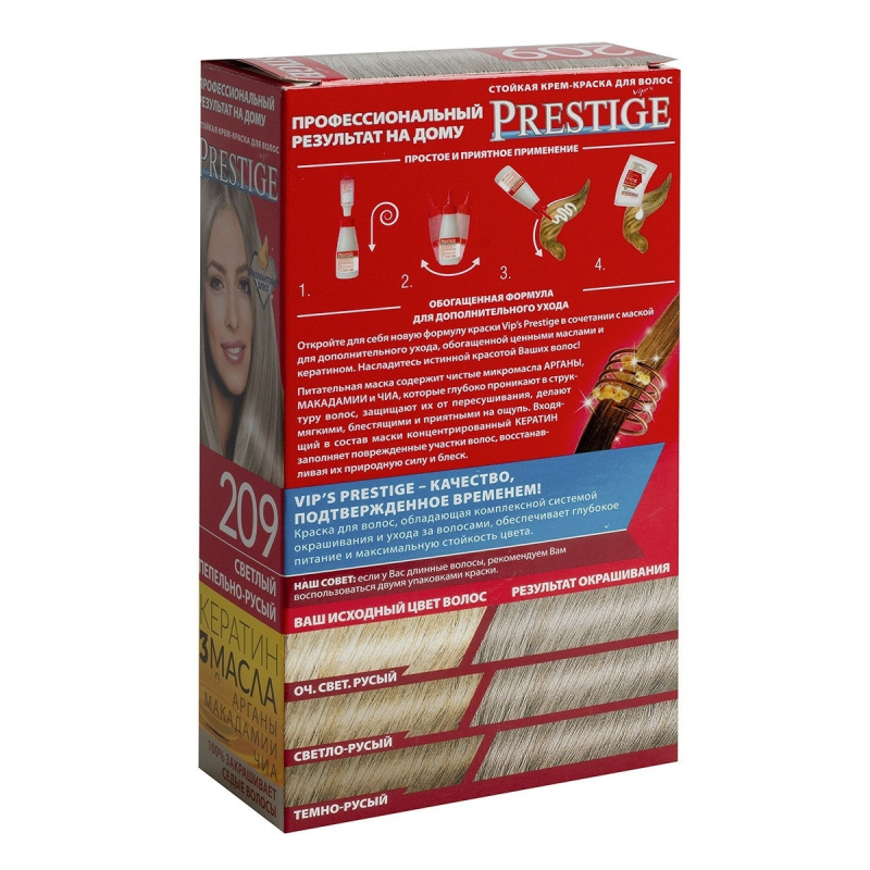 Crema-tinta resistente per capelli 209 Biondo cenere chiaro "Vip's Prestige"