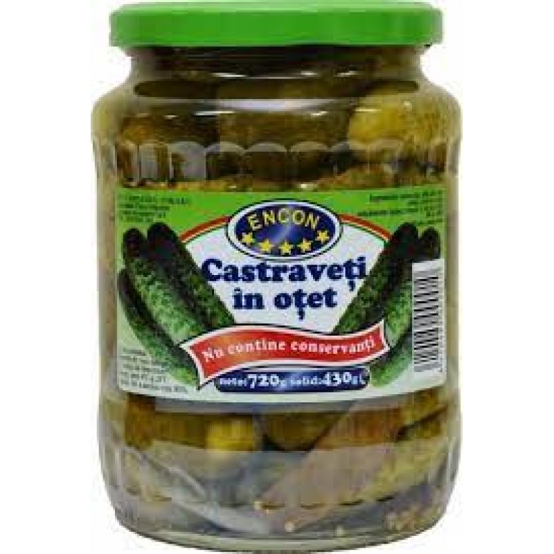 Ingredienti: cetrioli, acqua, aceto, sale, zucchero, spezie. Non contiene conservanti.